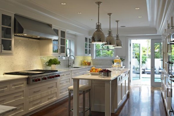 Island kitchens add more work and storage space to a kitchen. You can utilize the island for cabinet space, appliances, the sink, countertops, or a place a place to eat. An island has the power to evolve L-shaped kitchens into a horseshoe layout, and one walled kitchen into galley styled ones. An island kitchen is a preferred option because of its elegant looks and modernistic look. It is generally a combination of straight type or l type layout with an unconnected island placed along the layout. The island can be used as a breakfast table or a dry working zone. It is an ideal open plan kitchen and workspace.