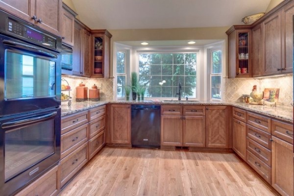 The U-shaped kitchen is suitable for larger kitchen spaces and great for large families. where multiple people will be working simultaneously in the space. Also known as the horseshoe kitchen layout, this style has three walls of cabinets and appliances. Choose this layout if you have large kitchen space or are likely to spend a lot of your time in the kitchen. It provides the additional floor, counters and cabinet space, creating an efficient work triangle that helps save time and energy when cooking meals.